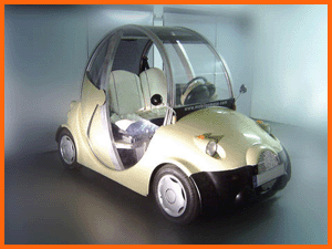véhicule commercial à moteur électrique, puis une petite voiture électrique,